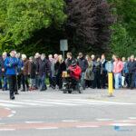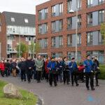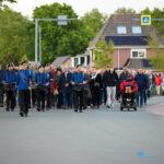 De route werd vervolgd via Het Boschplein, de Garstestraat, de spoorwegovergang en de Garst naar het monument aan het Zuiderveen. Voorop in de stoet liep muziekvereniging Prins Hendrik uit Scheemda, die op indringende wijze de ‘Dodenmars’ op trommels speelde en zo de plechtige sfeer onderstreepte.