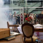 Rond 19.00 uur vertrok onder klokgelui de indrukwekkende ‘Stille Tocht’. Deze tocht volgde een route langs betekenisvolle plekken in Winschoten. Kunstenaar Willem Dresselhuys gaf onderweg meerdere ontroerende performances. De eerste vond plaats bij het Joods monument op de Venne.