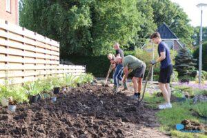 Een werkgroep van bewoners met groene vingers werd samengesteld en deze groep heeft hieraan een aantal avonden gewerkt om de perk te egaliseren en te vullen.