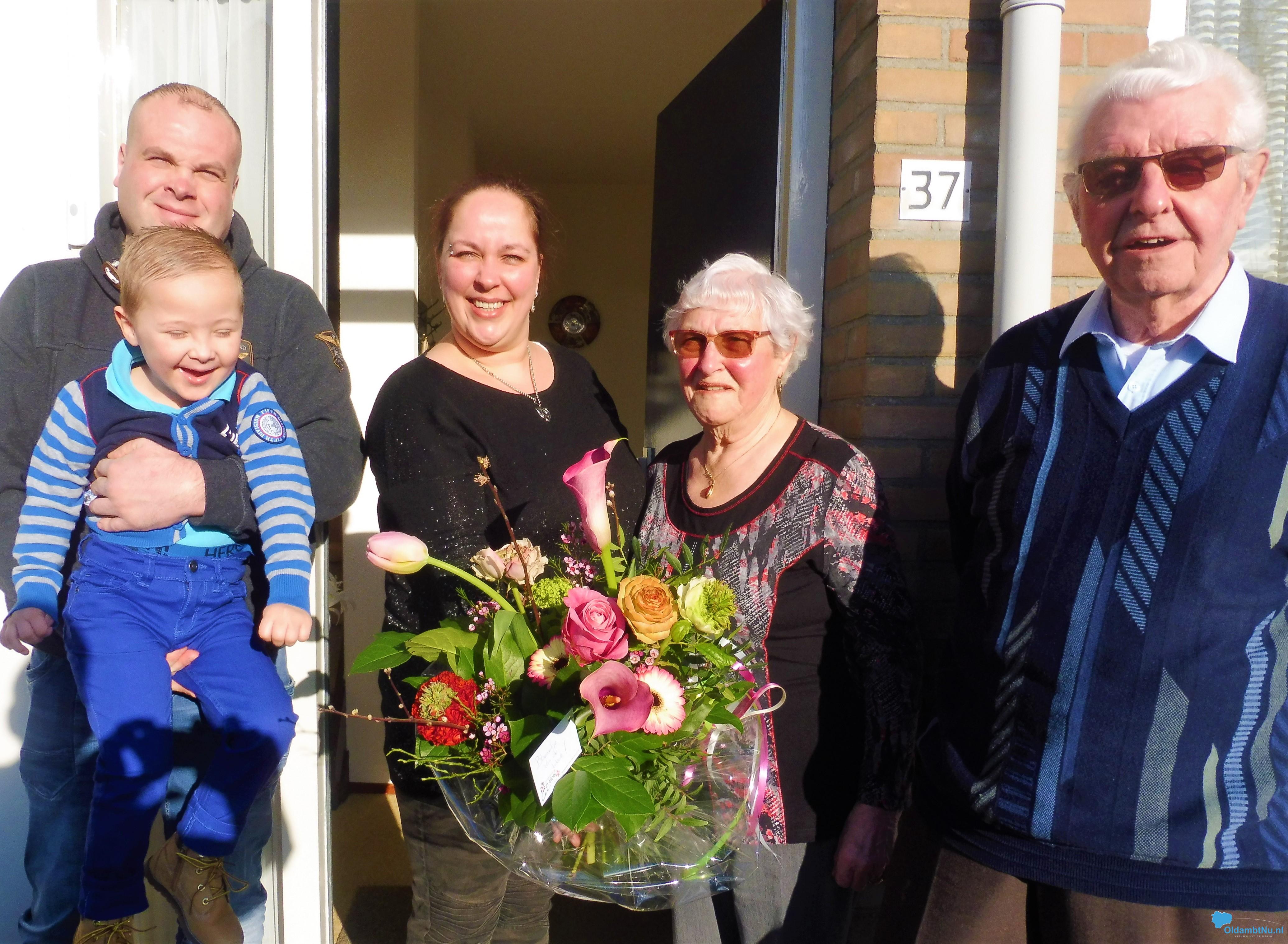 Bloemetje voor actieve overgrootouders Jan en Tjaaktje Groen