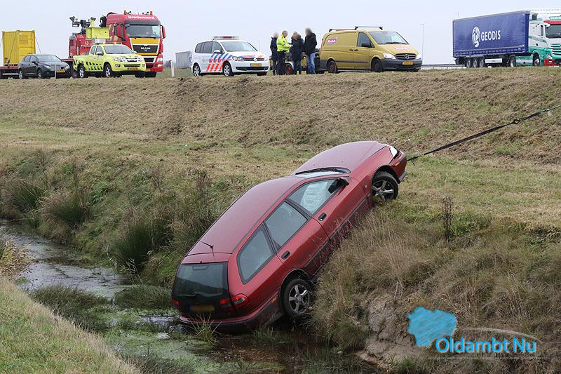 Automobilist komt met schrik vrij na voertuig te water A7
