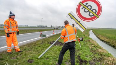 Scheemda – Op de A7 bij Scheemda zijn vrijdagochtend alle borden geplaatst voor de aankomende snelheidsbeperking van 100 kilometer per uur…