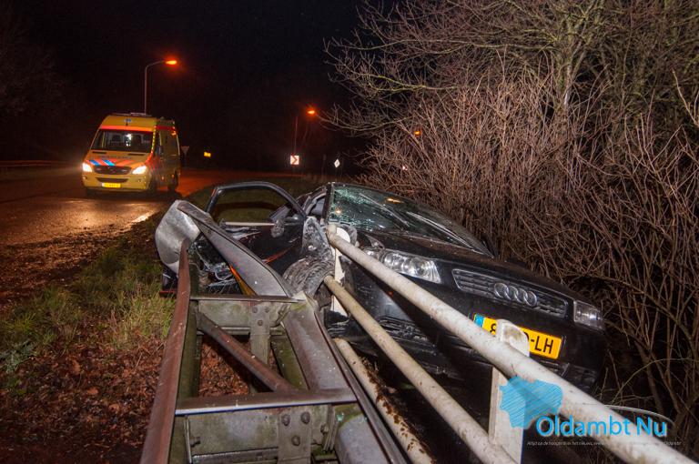 Auto glijdt van de weg op de Oude Rijksweg in Scheemda